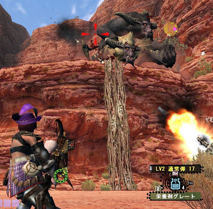 ヘビィで崖の上から散弾lv3調合打ちor崖の下から超速射