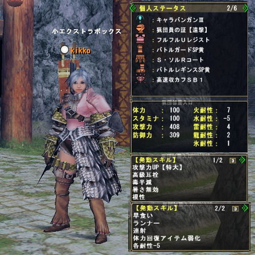 倒せなかった用に徹甲LV2、徹甲LV3(猟団部屋に売ってます)