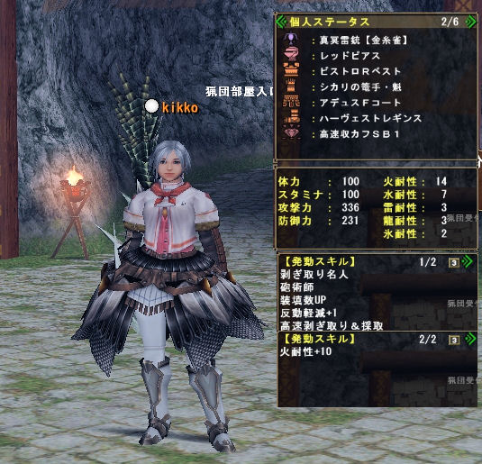 砲術師、はぎ取り名人、高速はぎ取り、反動軽減+2、装填up