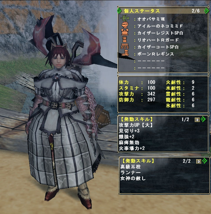 攻撃力UP【大】,見切り+3,麻痺無効,餓狼+2,火事場力+2